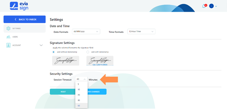From there, select the Settings option. Locate the Security Settings section, where you will find the option to adjust the Session Timeout duration.